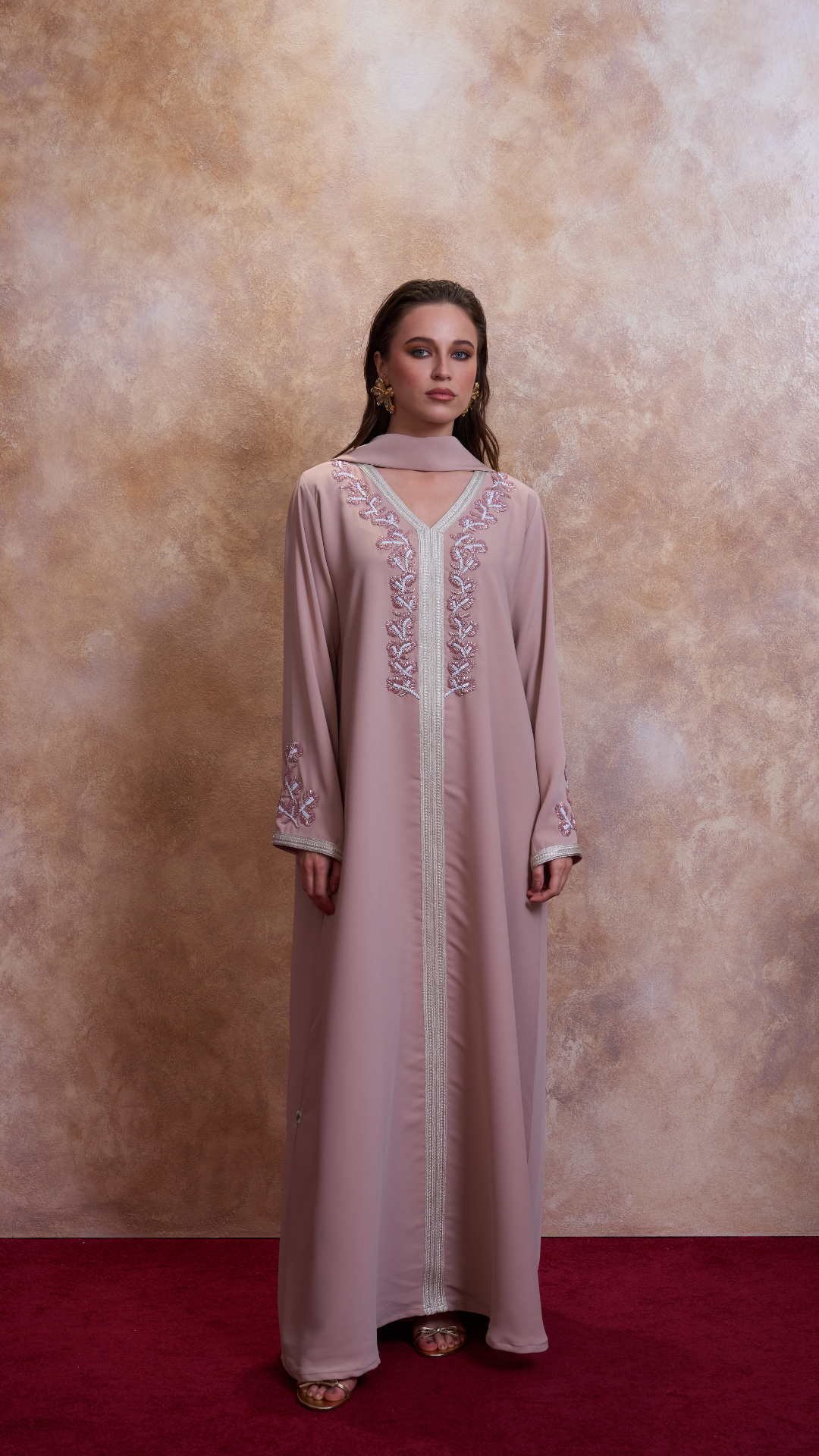 A statement of refined femininity, this flowing plum Jilaba features intricate silver floral embroidery and a modern silhouette that moves with effortless grace. Designed for the woman who blends tradition with contemporary allure, Lamar’s craftsmanship ensures every detail whispers sophistication.