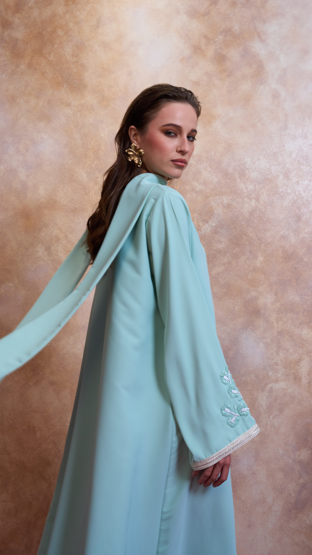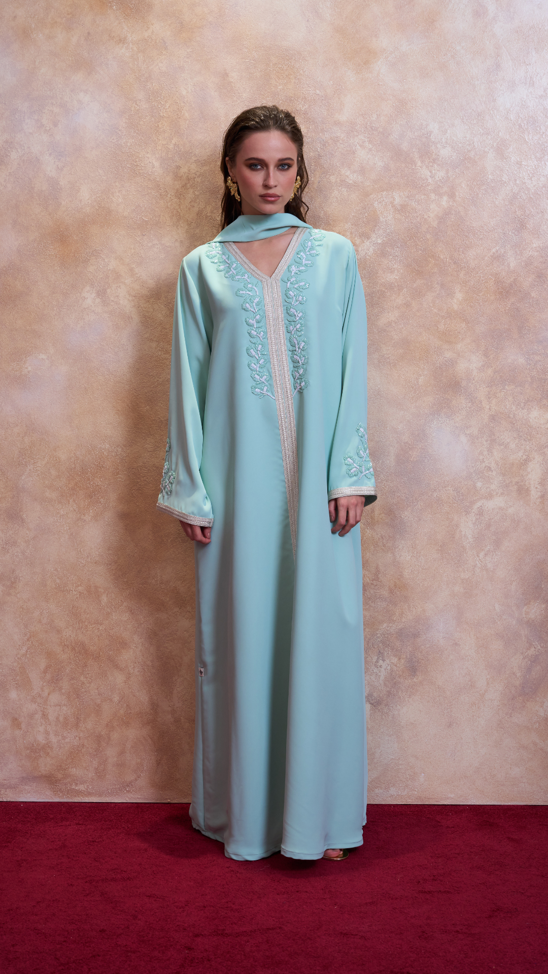 A statement of refined femininity, this flowing plum Jilaba features intricate silver floral embroidery and a modern silhouette that moves with effortless grace. Designed for the woman who blends tradition with contemporary allure, Lamar’s craftsmanship ensures every detail whispers sophistication.